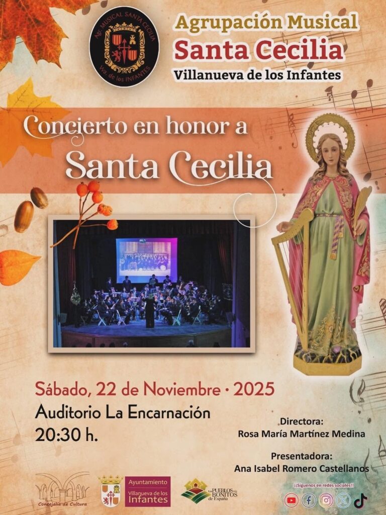Villanueva de los Infantes vuelve a convertirse en epicentro cultural con los Conciertos en honor a Santa Cecilia en Villanueva de los Infantes 2025, tres citas imprescindibles que tendrán lugar los días 22, 23 y 30 de noviembre. Un ciclo musical que reúne a las principales agrupaciones de la localidad en un homenaje lleno de emoción, tradición y talento.