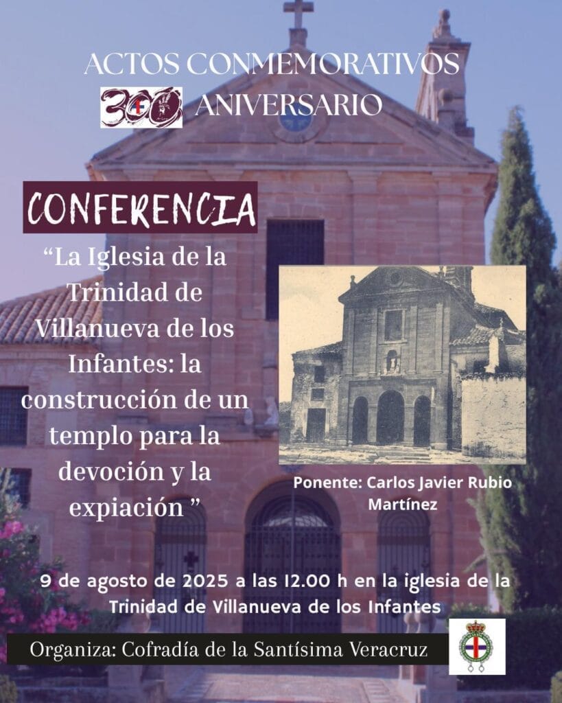 En el marco de los actos conmemorativos por el 300 aniversario de Nuestro Padre Jesús Rescatado, la Cofradía de la Santísima Veracruz de Villanueva de los Infantes organiza una conferencia muy especial. Este evento cultural y espiritual tendrá lugar el próximo sábado 9 de agosto de 2025 a las 12:00 horas, en la Iglesia de la Trinidad de Villanueva de los Infantes.