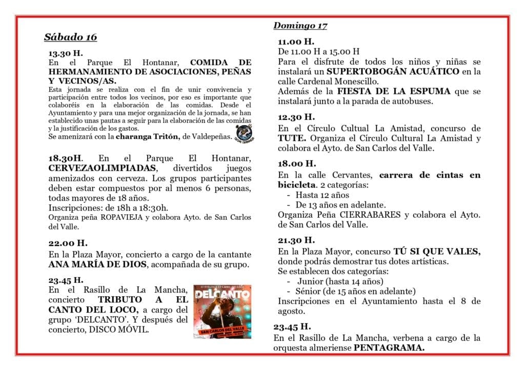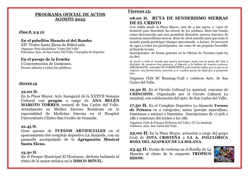 A continuación, te presentamos el programa completo y detallado de los eventos que llenarán de vida y color las calles de San Carlos del Valle durante estas fechas tan señaladas.