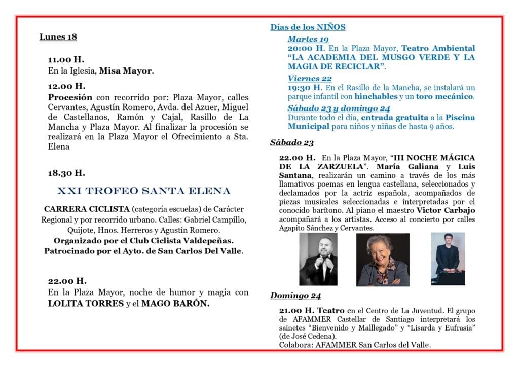 Programa completo de las Fiestas San Carlos del Valle en honor a Santa Elena 2025