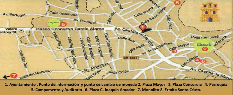 La organización ha difundido también un plano con los principales puntos del recinto medieval y de las actividades programadas. Entre los espacios señalados figuran:
