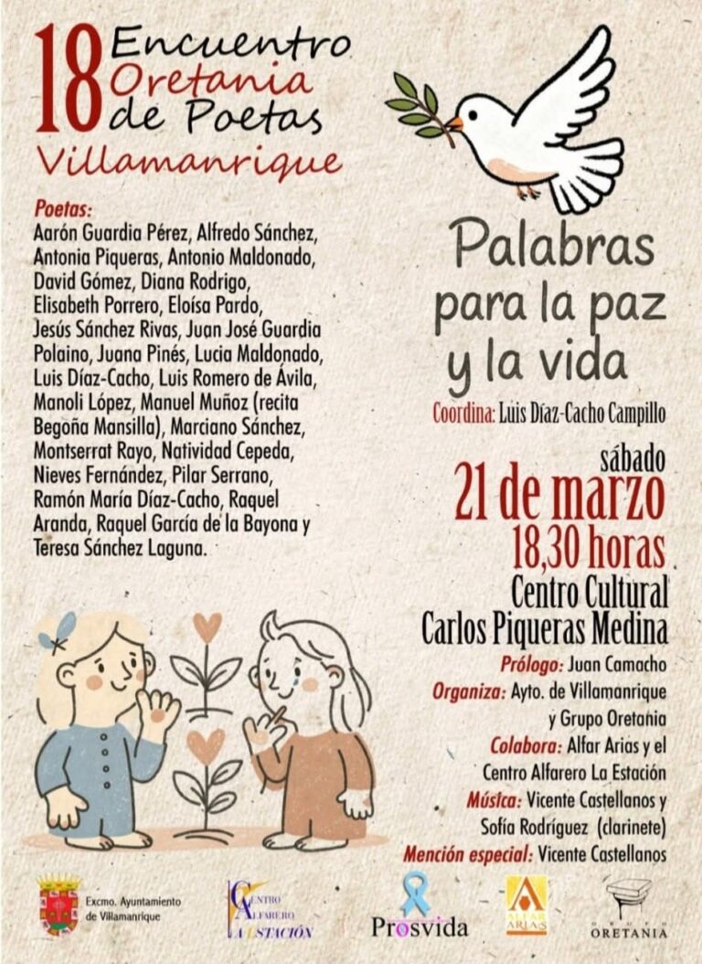 XVIII Encuentro Oretania de Poetas Villamanrique 2026: poesía, cultura y compromiso con la paz en el Campo de Montiel La […]