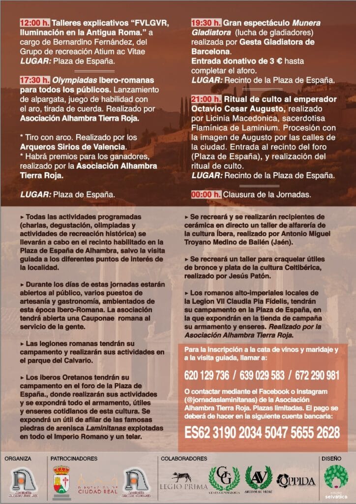 - 10:00 h. Jornada de puertas abiertas en Alhambra/Laminium con visitas teatralizadas