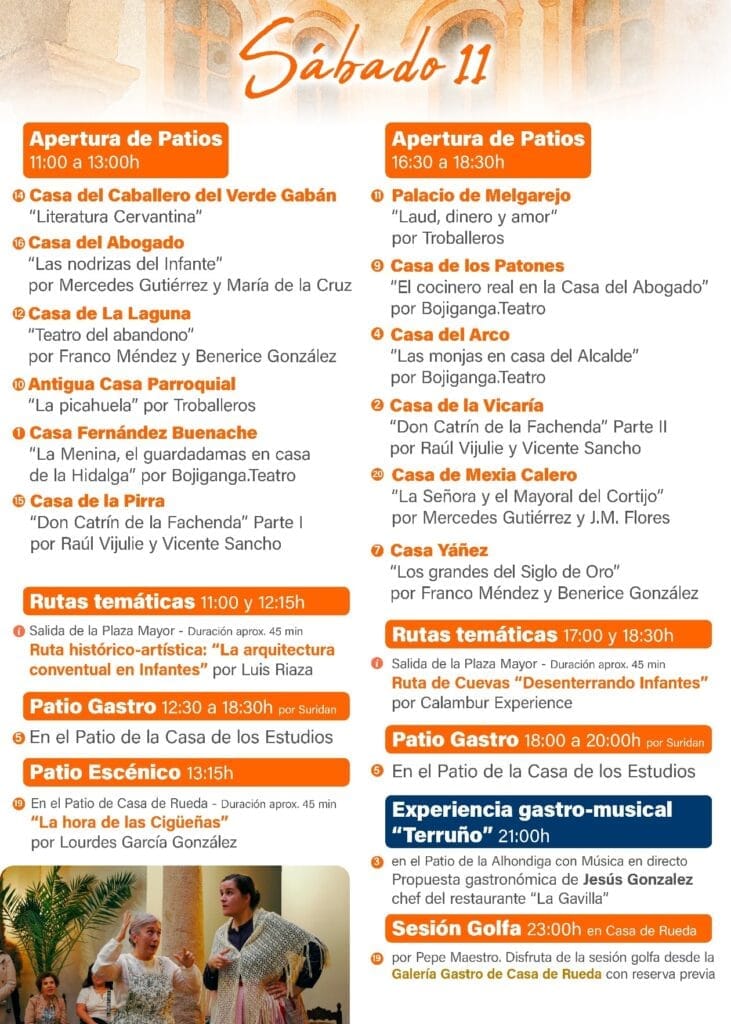 - 11:00 a 13:00h – Apertura de Patios con representaciones teatrales y literarias.