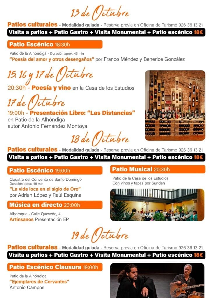 Apunta las fechas en tu calendario, del 10 al 19 de octubre de 2025, y no te pierdas esta cita imprescindible en el Campo de Montiel. Vive la magia de los patios de Infantes y déjate sorprender por todo lo que ofrecen.